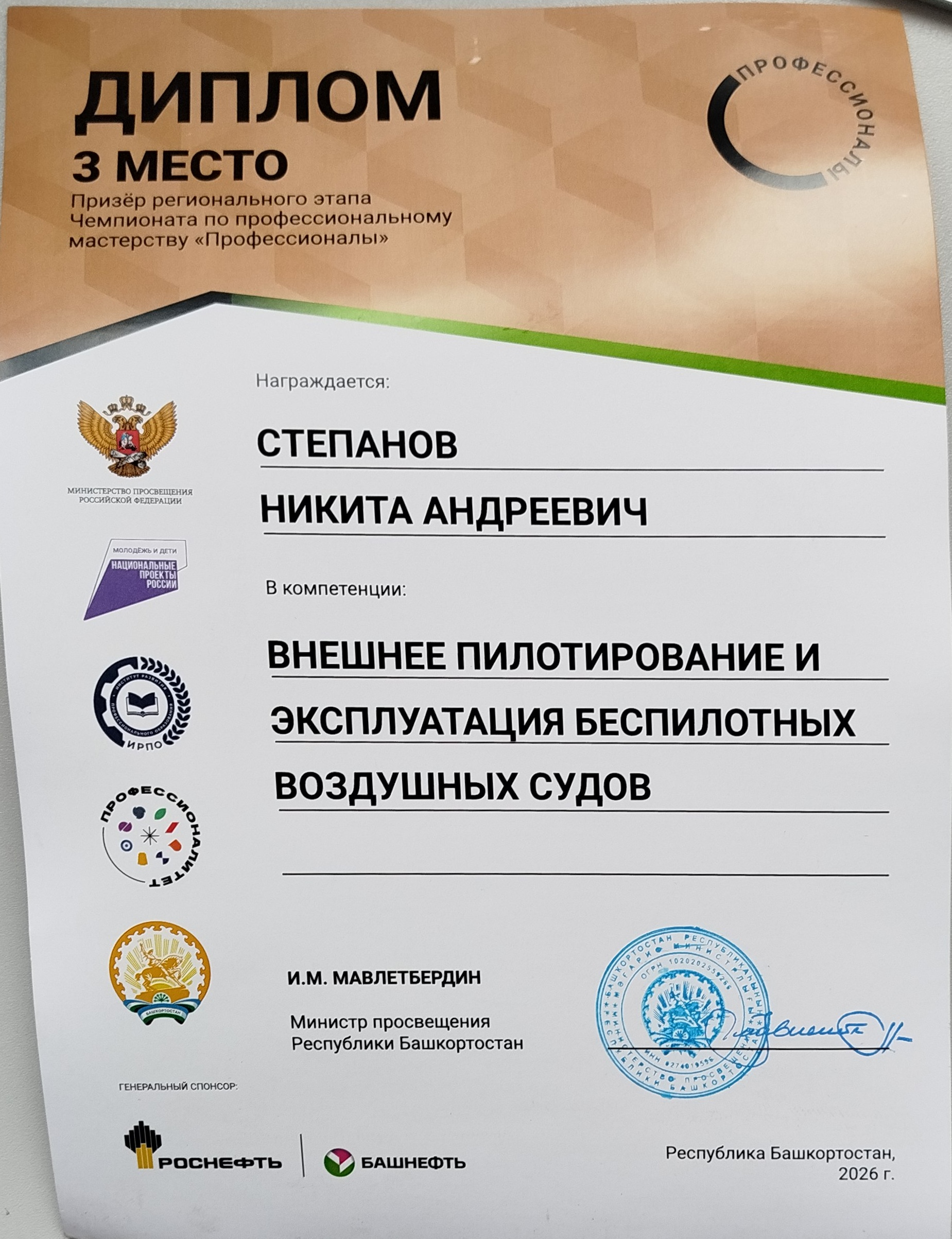 Компетенция: Эксплуатация беспилотных авиационных систем