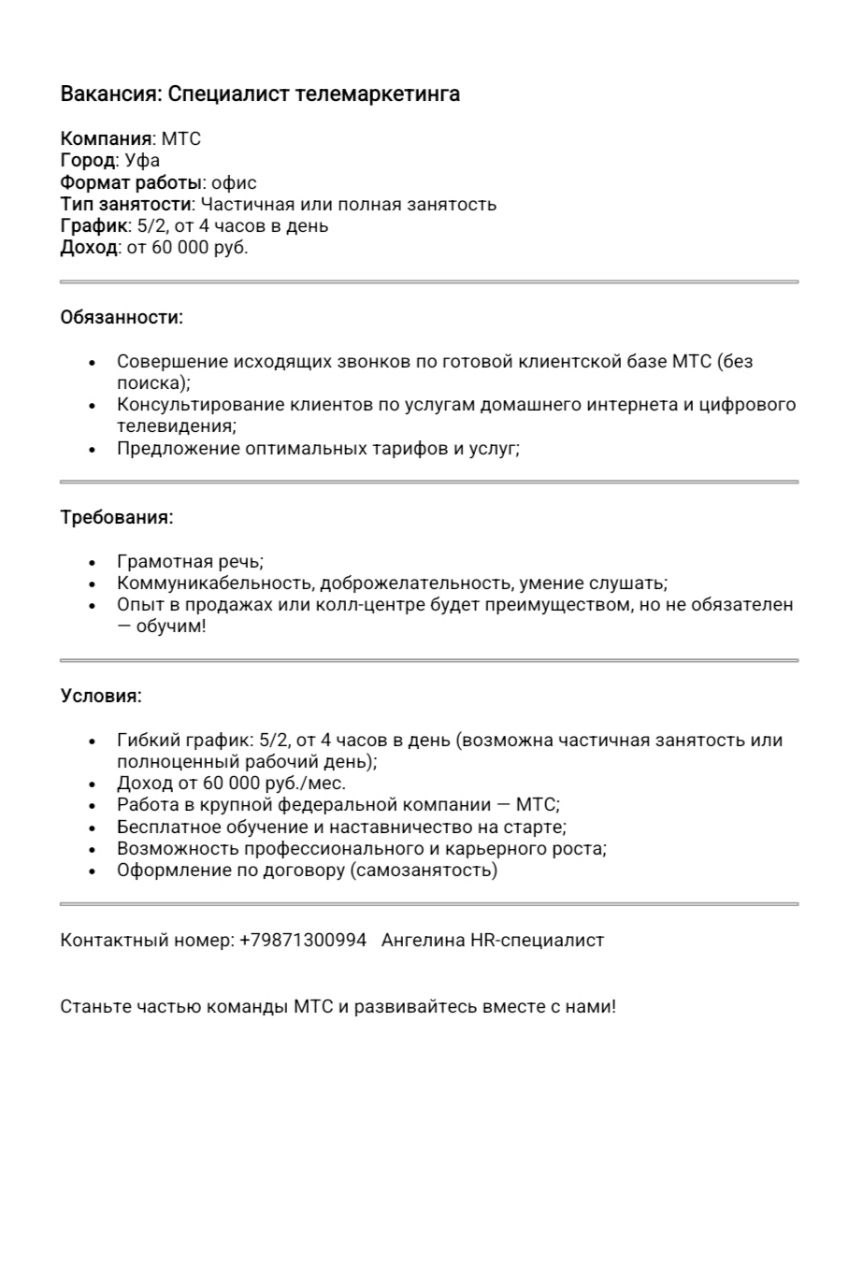 Вакансия от: 07.10.2025