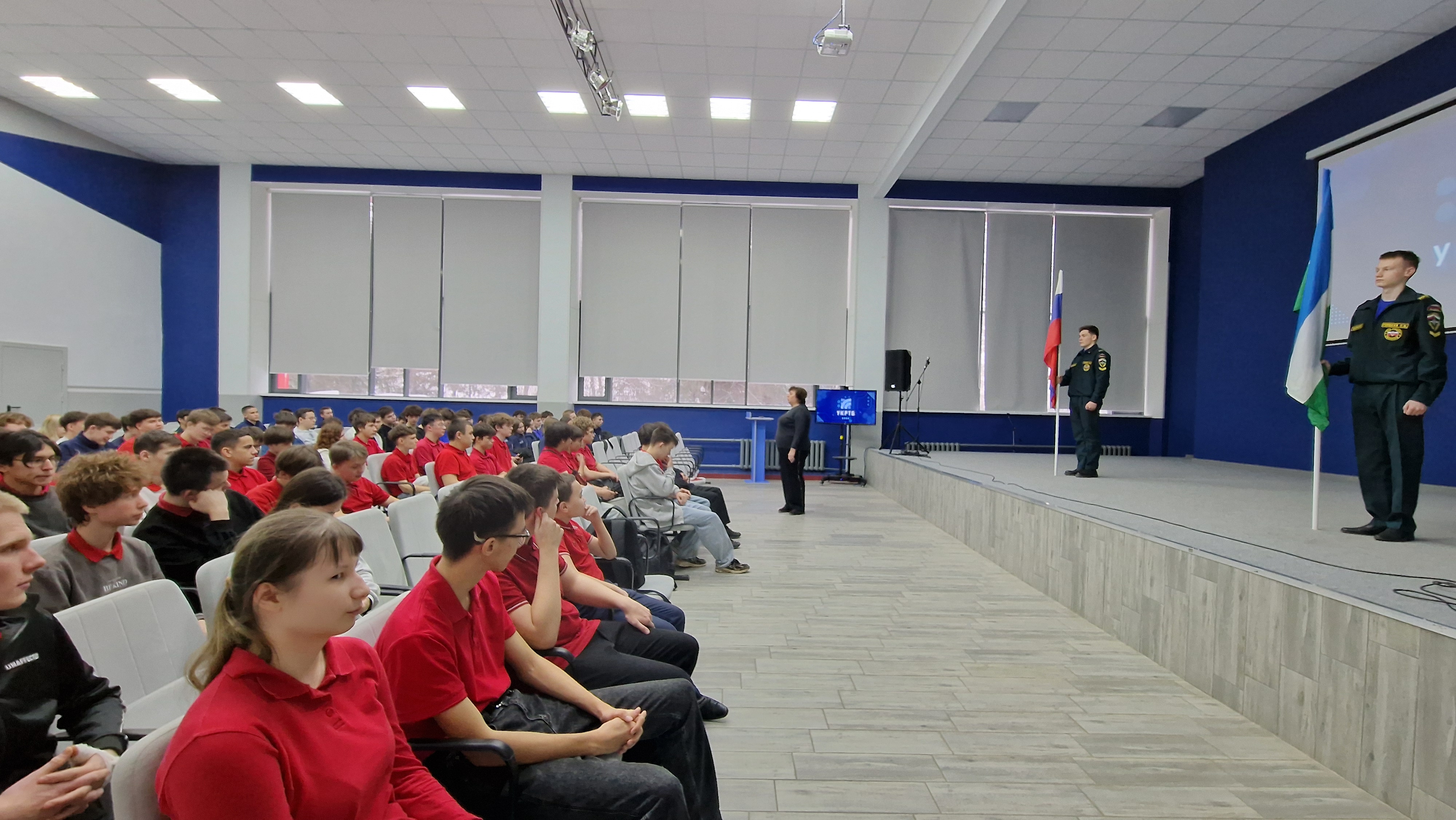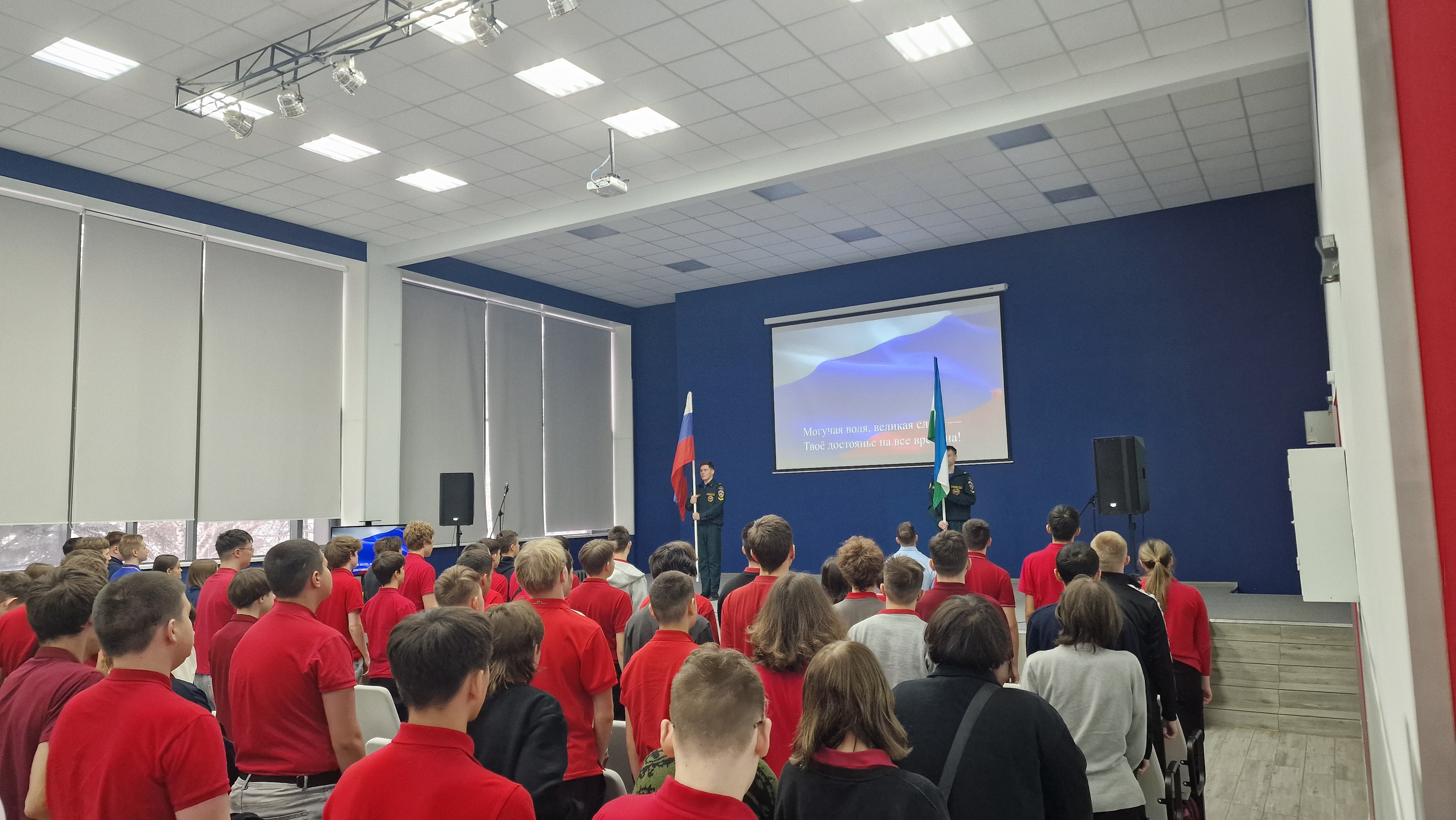 Утро понедельника на обеих площадках традиционно началось с еженедельной линейки и церемонии исполнения гимнов Российской Федерации и Республики Башкортостан.