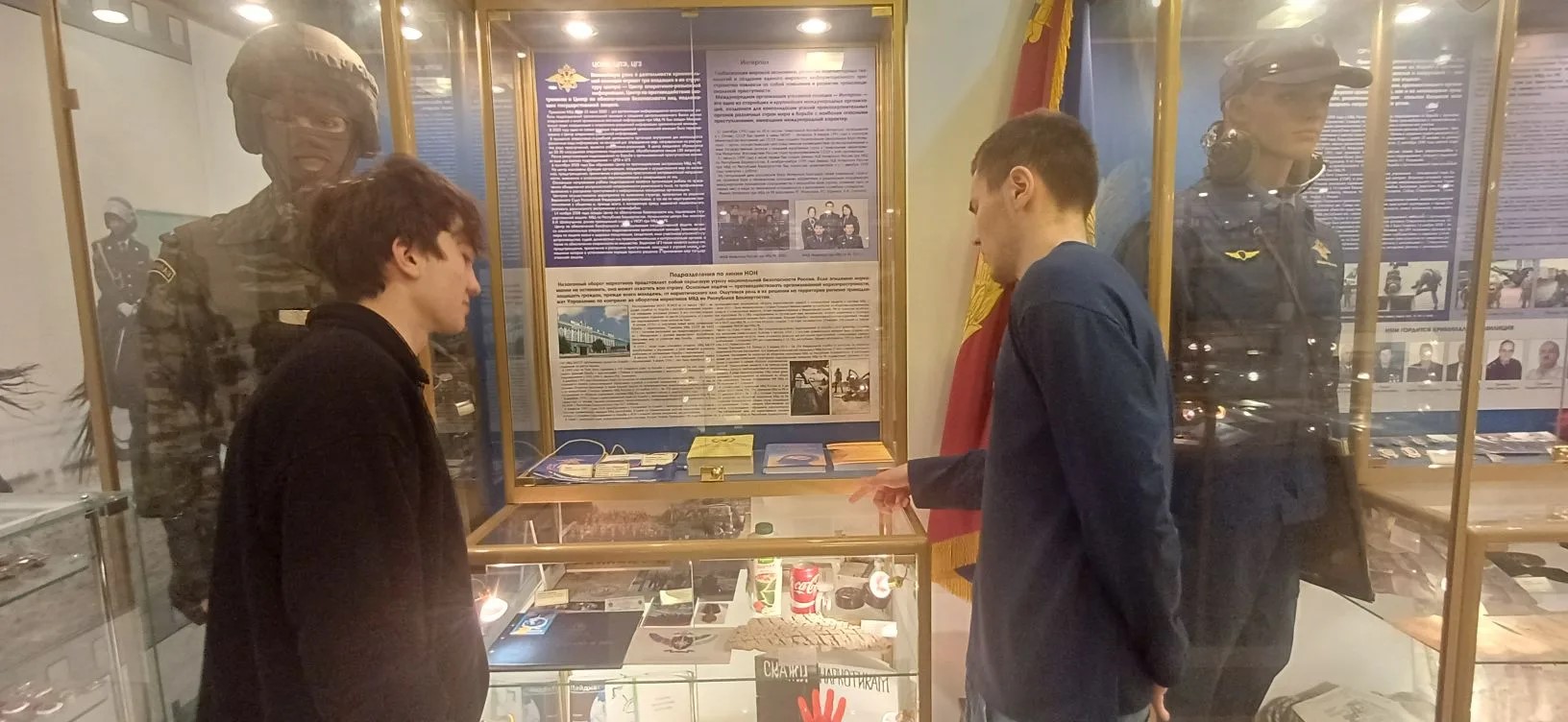 Особый интерес студенты проявили к оперативно-криминалистической технике, первым компьютерам, форменному обмундированию, средствам связи, именному наградному оружию, а также современным технологиям, которые используются служителями закона для борьбы с преступностью. Также экскурсия широко была представлена предметами социалистической эпохи-наручниками, кобурой, различными брошюрами, повязкой ДНД и пр.