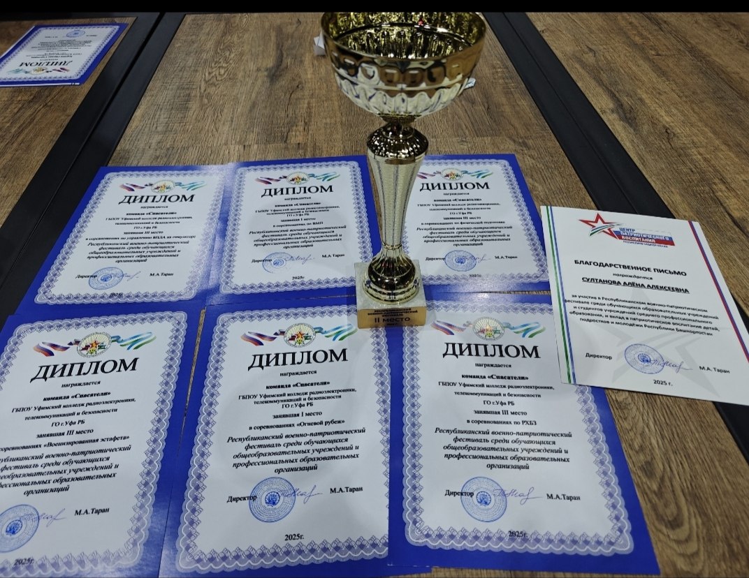 Наша команда под руководством преподавателя Султановой Алёны Алексеевны снова доказала своё мастерство, заняв второе место в общекомандном зачёте республиканского военно-патриотического фестиваля, который проходил с 27 сентября по 1 октября 2025 года в учебно-методическом центре «Авангард» Военно-патриотического парка Республики Башкортостан «Патриот» имени Героя России Максима Владимировича Серафимова.Ребята отличились высокими результатами сразу в шести номинациях: