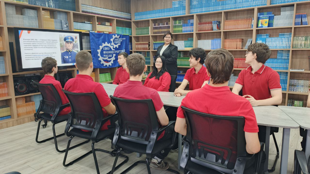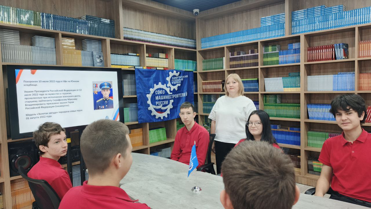 03.10.2025 г. в медиацентре на площадке Дема заведующая библиотекой Шенгурова Альмира Фаниловна совместно с педагогом-психологом Ибрагимовой Гузель Махмутовой провели просветительское мероприятие для студентов целевого обучения 9ТМ-22-24, посвященное мужеству и доблести нашего земляка М.В. Серафимова, участника СВО, Героя России (8 января 1995, Уфа — 27 февраля 2022, Украина).